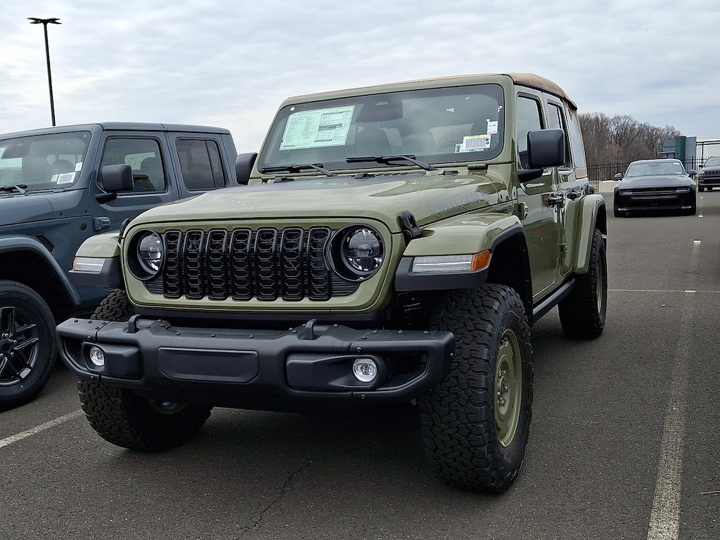 QUICK ORDER PACKAGE 22H WILLYS 41 2.0L I4 DOHC DI Turbo Engine w/ESS, 8-Speed Automatic 850RE Transmission, Premium Tan Sunrider Soft Top, 7 & 4 Pin Wiring Harness, Willys 41 Retro Edition Wrangler Decal, Conventional Differential Front Axle, Power Dome Dual Vented Hood, 4WD Willys 41 Swing Gate Decal, Dana M210 Wide HD Tube Front Axle, Body Color Grille w/Gloss Black Rings, Daytime Running Lamps LED Accents, Front LED Fog Lamps, LED Premium Reflector Headlamps, E-Locker Rear Axle, Body Color Rubicon Highline Flare, Corning Gorilla Glass, Security Alarm, Willys 41 Retro Edition Tailgate Plaque, Willys 41 Retro Shift Bezel Insert, Class II Receiver Hitch, Steel Front Bumper, Advanced Brake Assist, Automatic Headlamps, Willys 41 Retro Edition Hood Decal, Off-Road Plus Mode, Willys 41, 8-SPEED AUTOMATIC 850RE TRANSMISSION Adaptive Cruise Control w/Stop, Anti-Lock 4-Wheel Disc Brakes, Selec-Speed Control (STD), CONVENIENCE GROUP Emergency/Assistance Call, 2-Door Passive Entry, Front Door Locks, Remote Start System, Cluster 7.0 TFT Color Display, Universal Garage Door Opener, Heated Front Seats, Air Conditioning w/Auto Temp Control, Heated Steering Wheel, Air Filtering, 2.0L I4 DOHC DI TURBO ENGINE W/ESS.